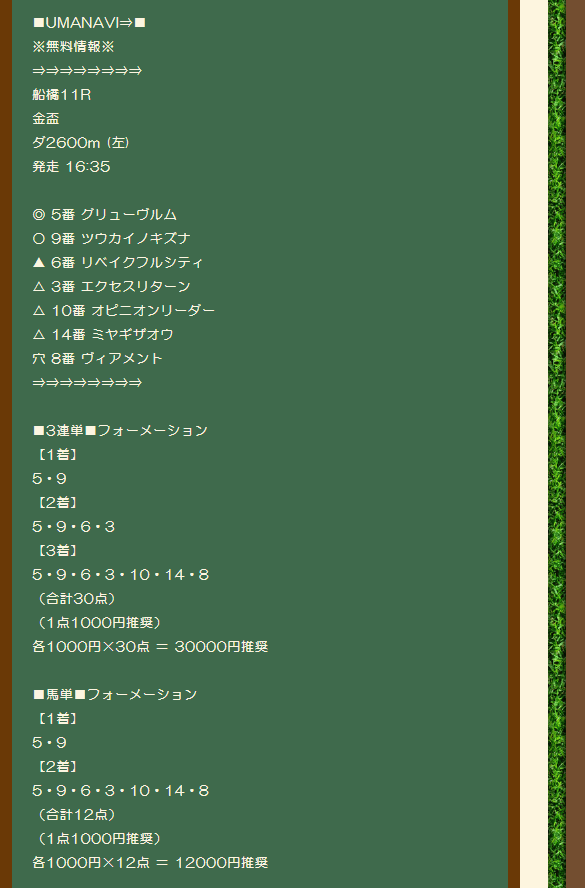 最終レースの無料予想の回では毎回馬券買ってます!