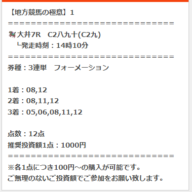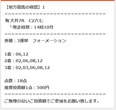 7日(土)の無料予想に参加をしたら