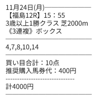 まずは24日(月)福島9Rの1万7500円の方!