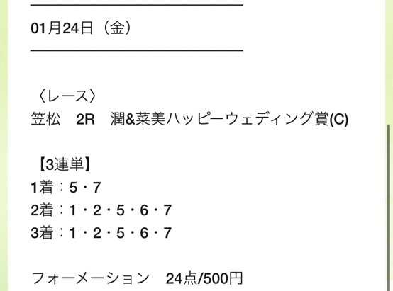 うま活の1/24の無料予想で