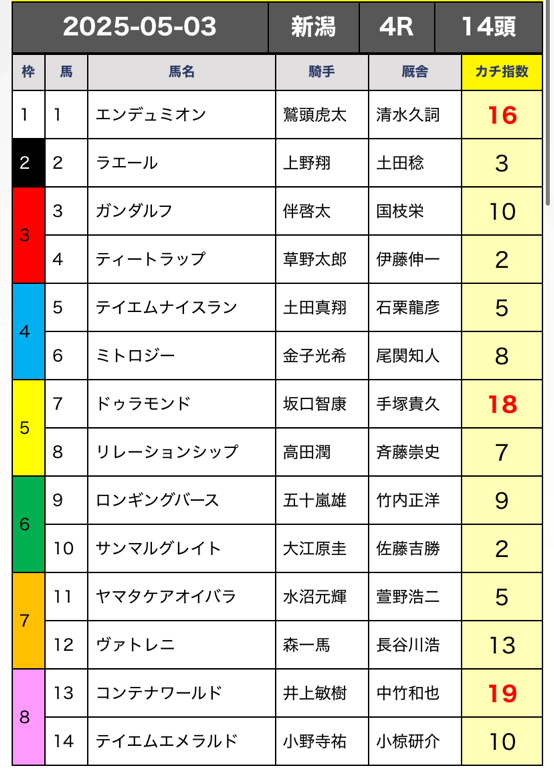 5月3日土曜日の新潟4Rで馬連・馬単ダブル的中!