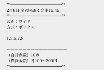 8番人気をしっかり拾ってワイド3種完全的中!