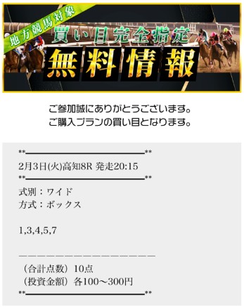 3日(火)の地方競馬無料予想の馬券を買い目通りに購入