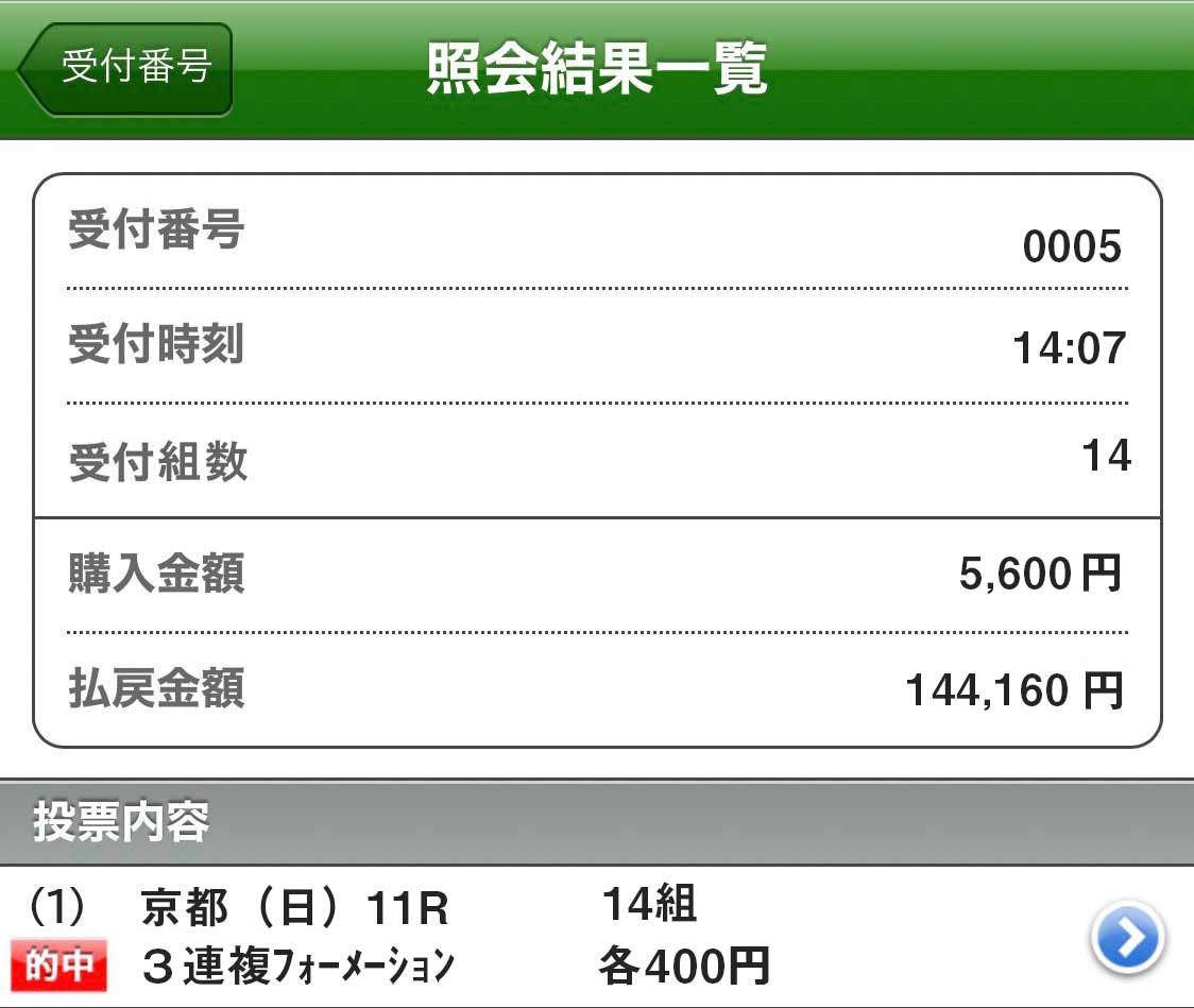 馬券代1点400円とかなり控えめなのに