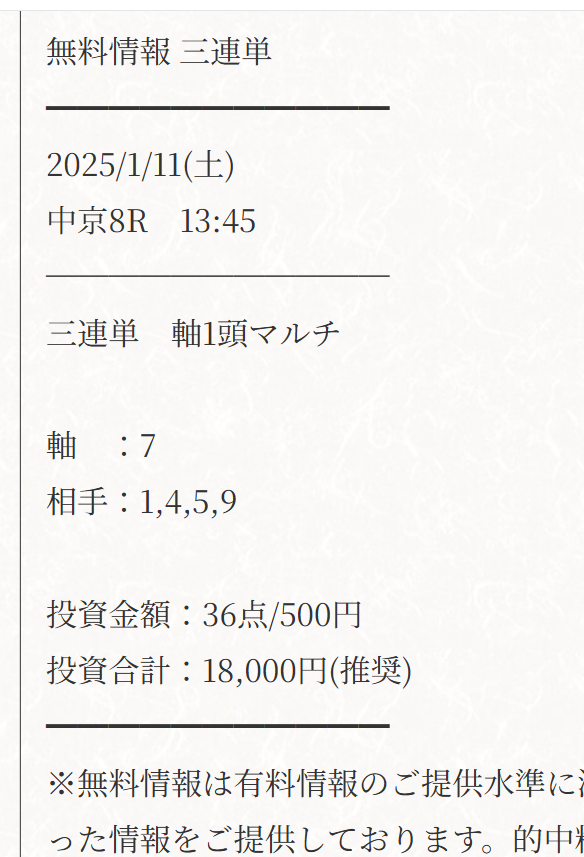 無料予想でワイド3点完全的中!