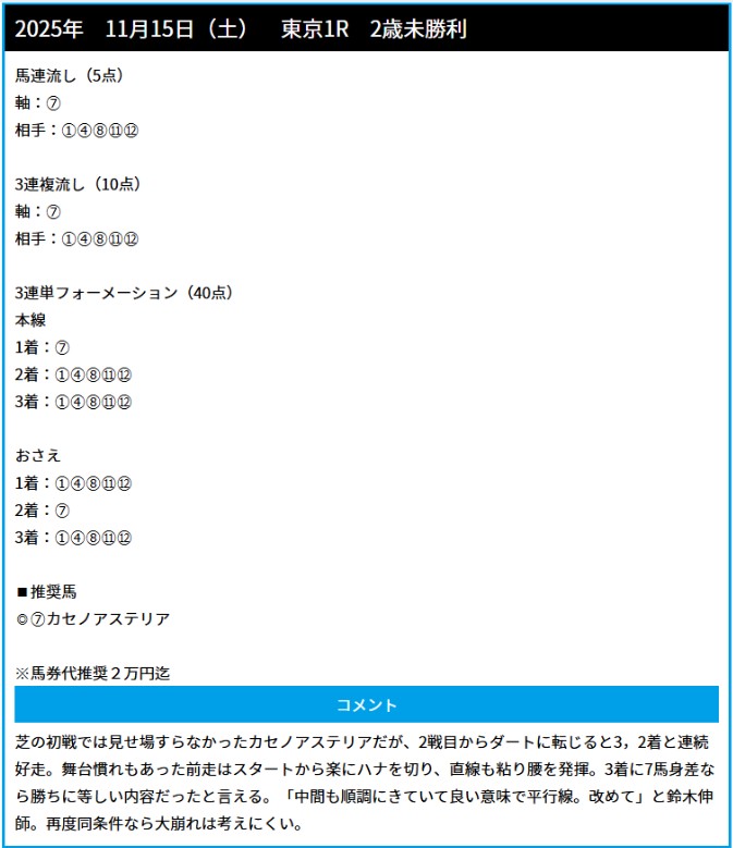 11月2度目のあさイチ無料予想的中は15日(土)だった